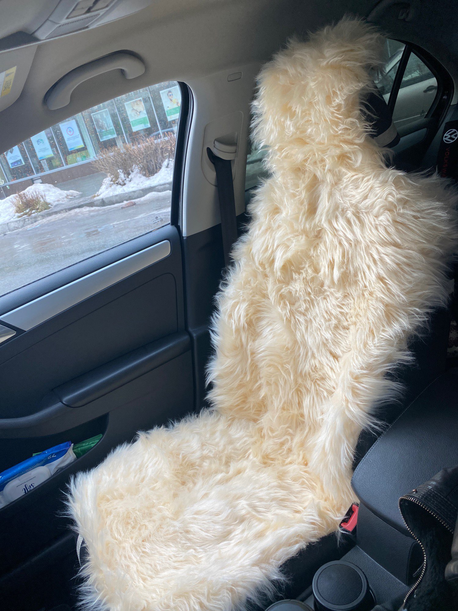 The goods came quickly. Artificial fur, good quality, soft and pleasant to the touch! On the seat dressed easily, keeps well. Thank you very much to the store!