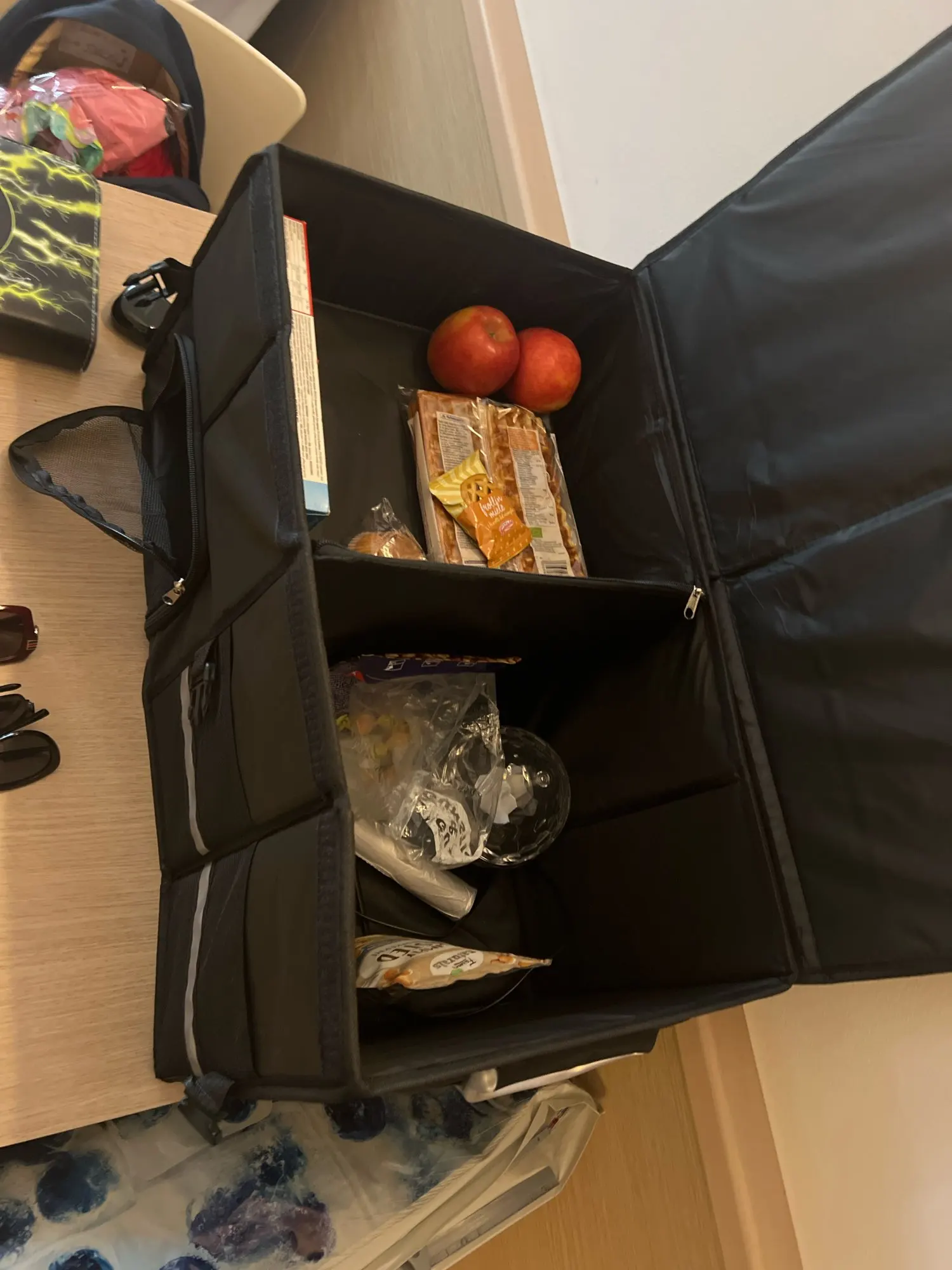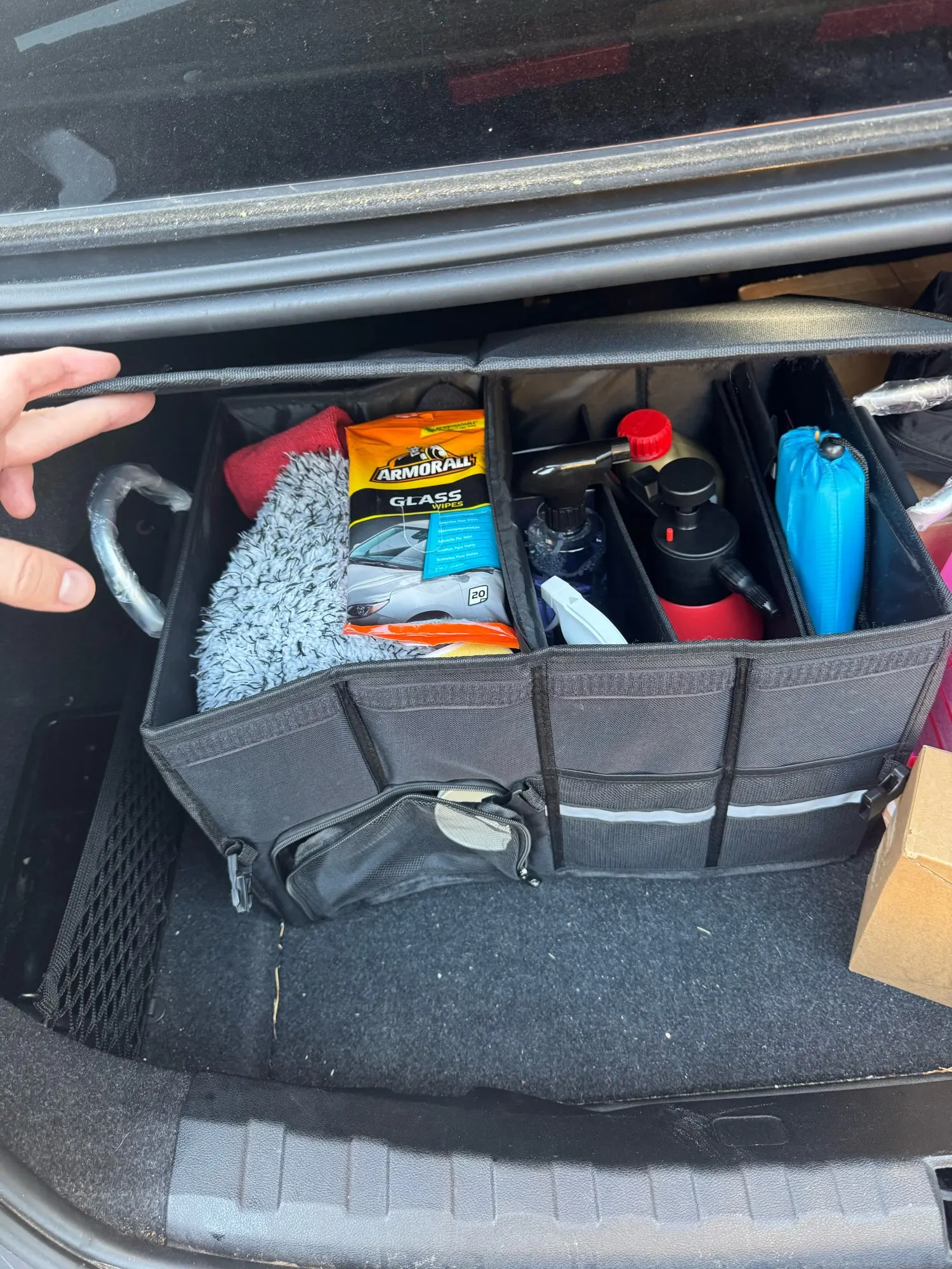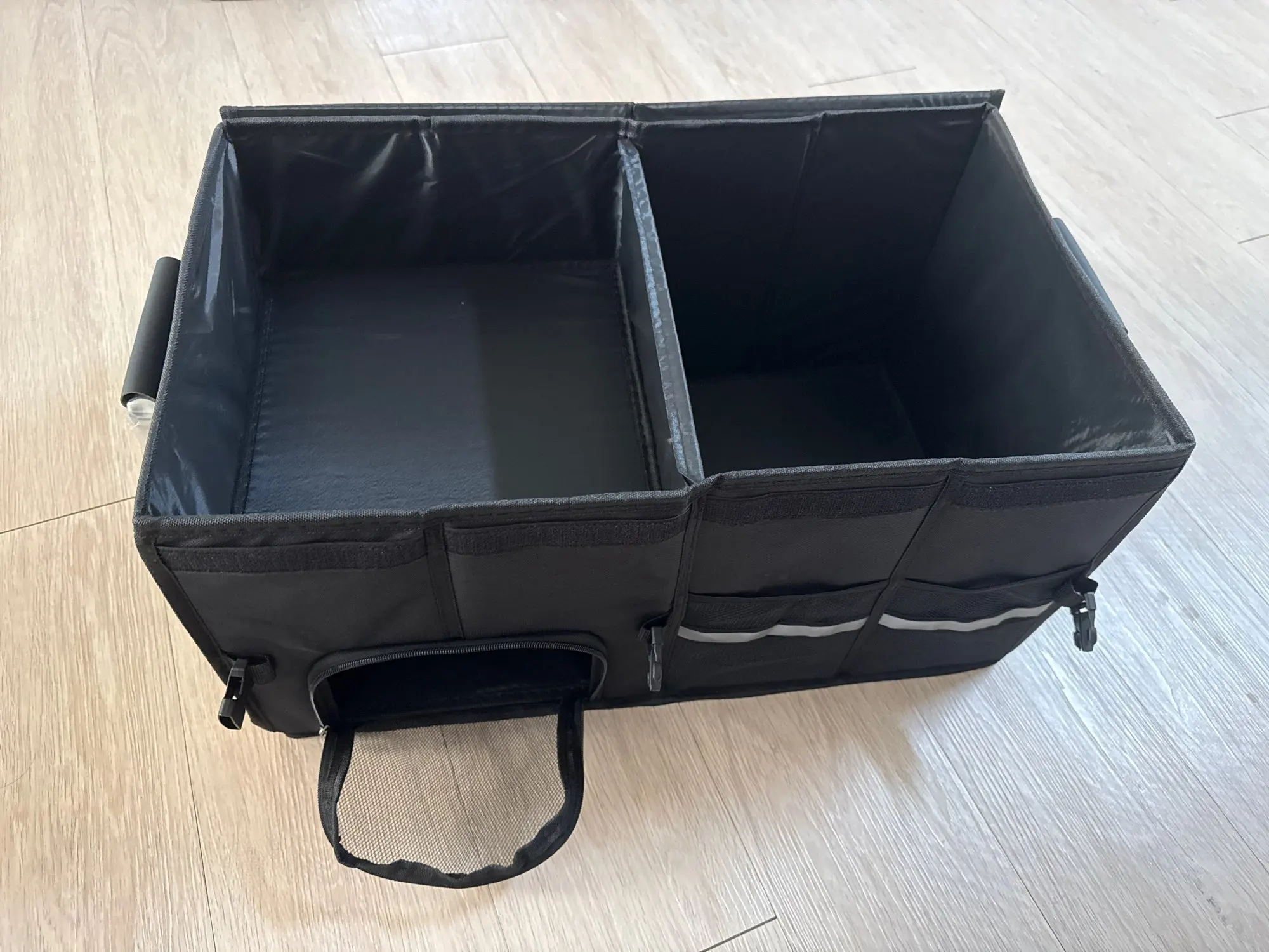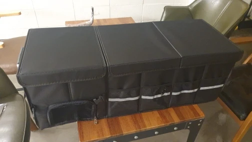 I bought it for a car wash supplies bag, but it's too big so I changed it to a trunk storage box. It's sturdy and nice. I need to buy another smaller one.
