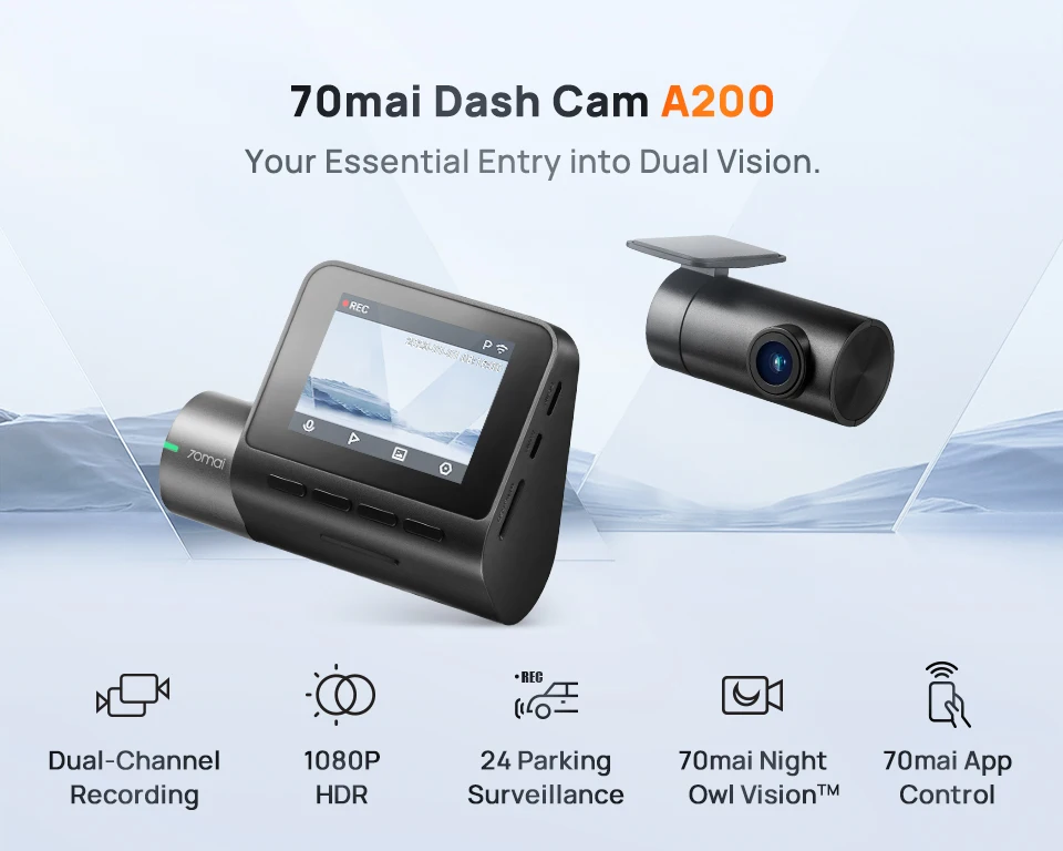 Global Accessoies Dash Cam A200 Dual-channel Record 1080P HDR 2” IPS Screen 24H Parking Surveillance 70mai Car DVR A200 WIFI APP 130° FOV
