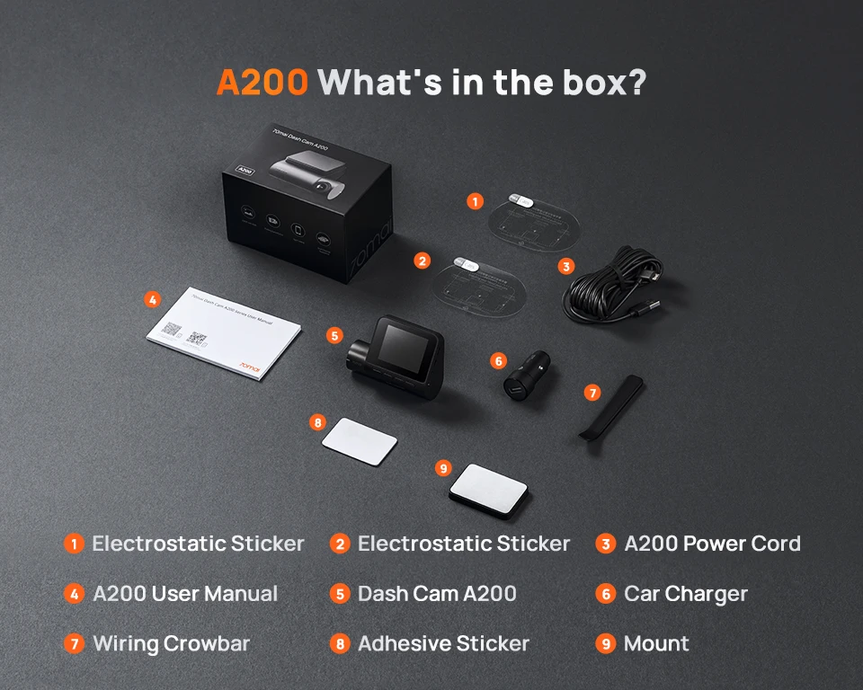 Global Accessoies Dash Cam A200 Dual-channel Record 1080P HDR 2” IPS Screen 24H Parking Monitor 70mai Car DVR A200 WIFI APP 130° FOV