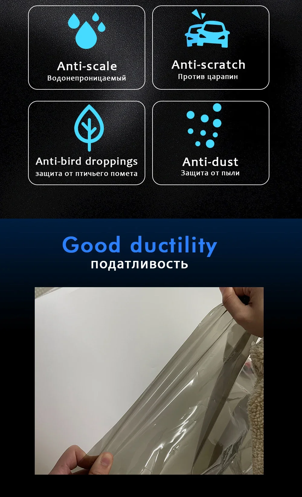2,With strong protection function, scratch resistance, strong and durable, protect the headlight aging, prevent cracks, etc.