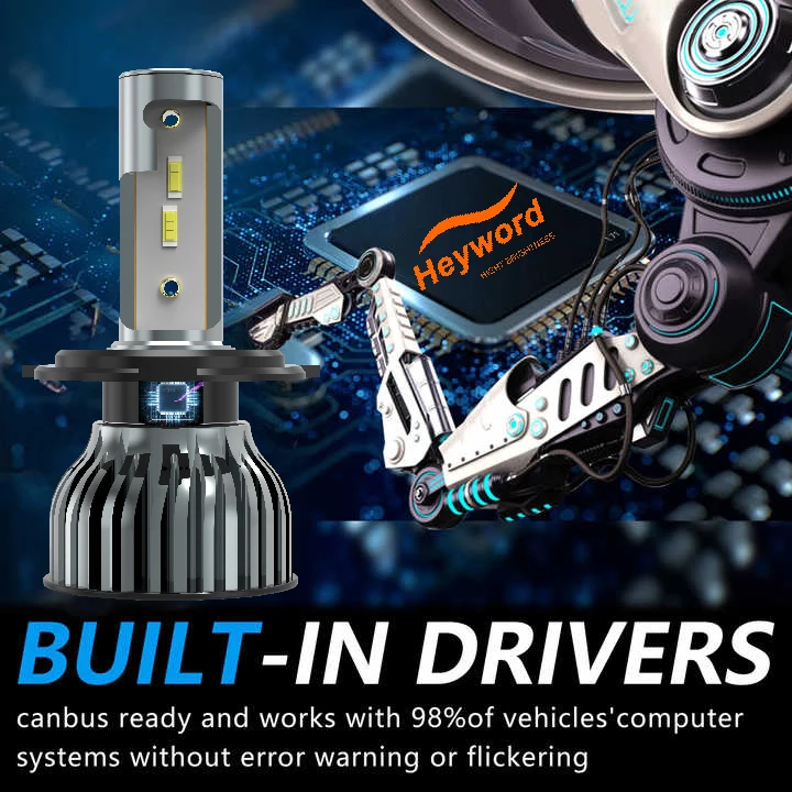 Heyword 22000lm 120W 1860 CSP chip 3000k/4300k/6000k/8000k Car LED Headlight h4 h7 h1 LED headlights 9005 H7 H8 H9 H11 led light