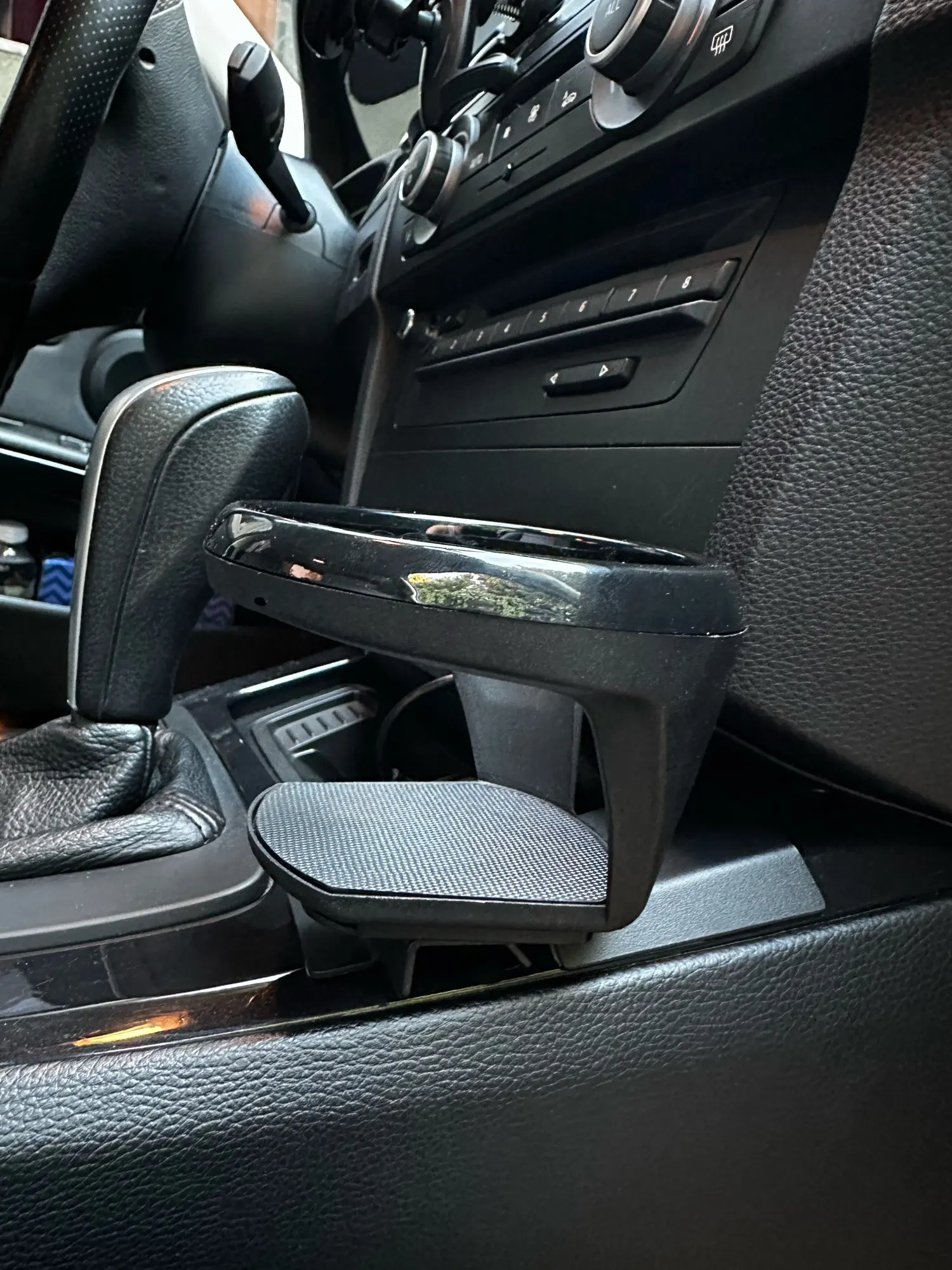 Super product of good quality, the double-sided tape holds well and adapts well to shapes. It is compatible with manual transmissions and does not interfere with shifting gears. Recommended product for BM riders who know the hassle of not having a cup holder.