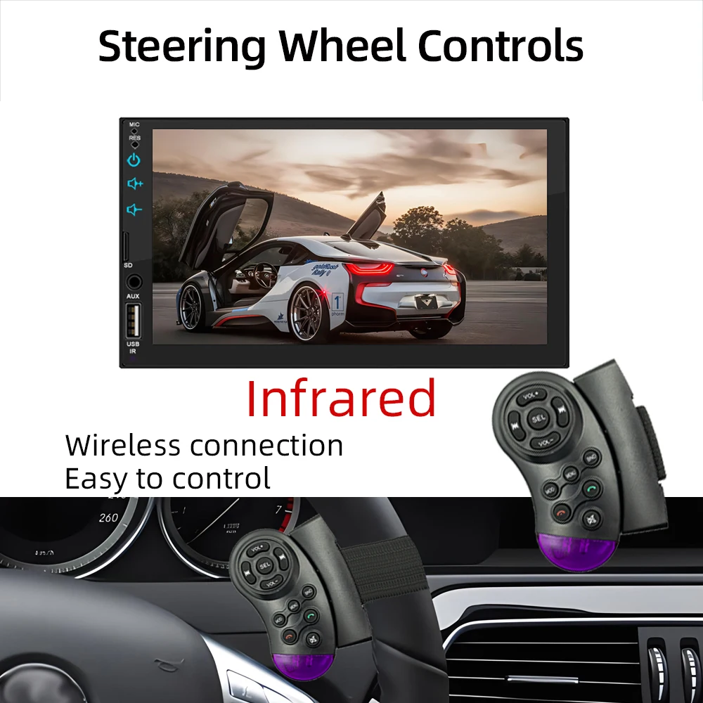HIPPBQCC 7 Inch Car Radio Carplay Android Auto Multimedia Bluetooth Player Mirror-Link 1 Din HD Touch Screen USB FM AUX Input