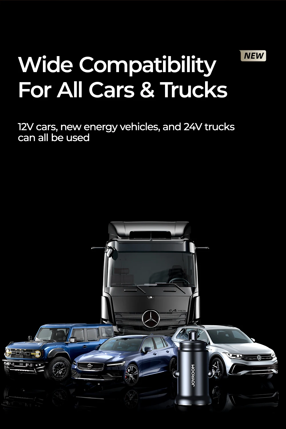 12V cars, new energy vehicles, and 24V trucks can all be used
