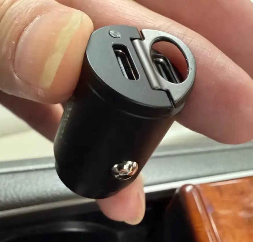 The charger is miniature, fits completely into the cigarette lighter socket, it's convenient that there are two connectors, I recommend it 10/10!!!