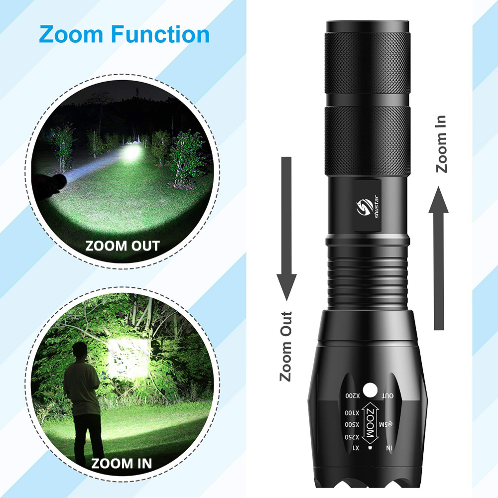 NOTE 2: Our flashlight has 3 kinds of lamp bead selection, T6 has the lowest brightness, L2 is brighter than T6, and V6 is brighter than L2.