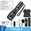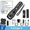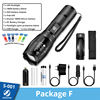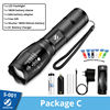 Product features and composition A: 18650battery 1: Attack Head B: Solid state 2: Convex Lens C:HQ LED 3:Zoom logo D:3 x AAA 4: Zoomable Design E:IPX-6 waterproof 5:waterproof Rubber Ring F:8000 Lumen 6: AAA battery Holder 7: Tall Cover
