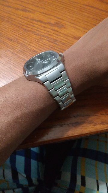 Very solid, sturdy watch and bracelet with butterfly clasp, nicely shaped hands, saturated color transitioning to black toward the outside. My only criticism is that the date window is extremely small.