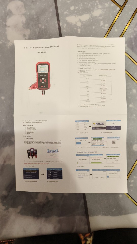 Excellent acquisition, before with the voltimeter could not see more details of the Zoyte Z 100 battery, only the. Voltage and with the table of the ranges have an appreciation with the tester Lancol Micro 500 I have more information, the ignition test and the curves other excellent added value, Verifying the state of the alternator and charging system. H was very satisfied with my product, attacking Maribio charge for the transport of Miami to Managua, Nicaraguan. Companies in China by excellent product and AliExpress application. Greetings.