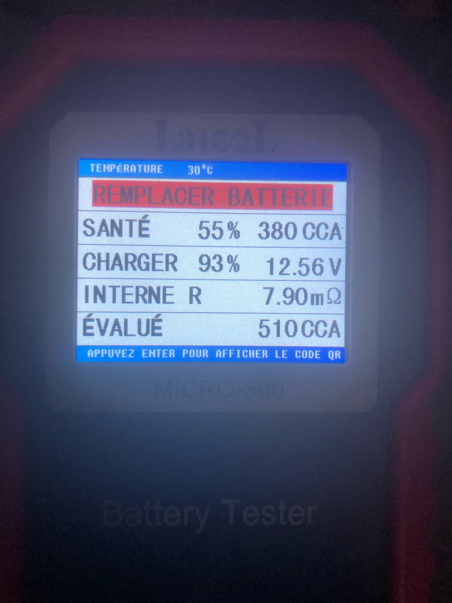 Micro 500 12V Car Battery Tester 40-3000 CCA Lithium Battery Test Lead Acid Battery Analyzer LED Display with QR Code
