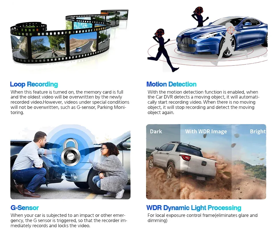 ●About Video: Our Car DVR is FHD 4K Video Recorder,must use high quality U3 TF Card, any low quality/low speed TF card all can’t support our DVRs work normally, if you can’t make sure you have good TF Card,please buy our Original TF Card together
