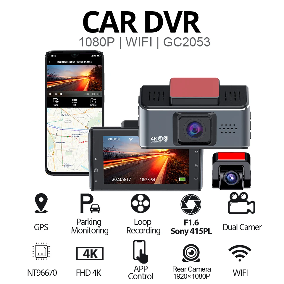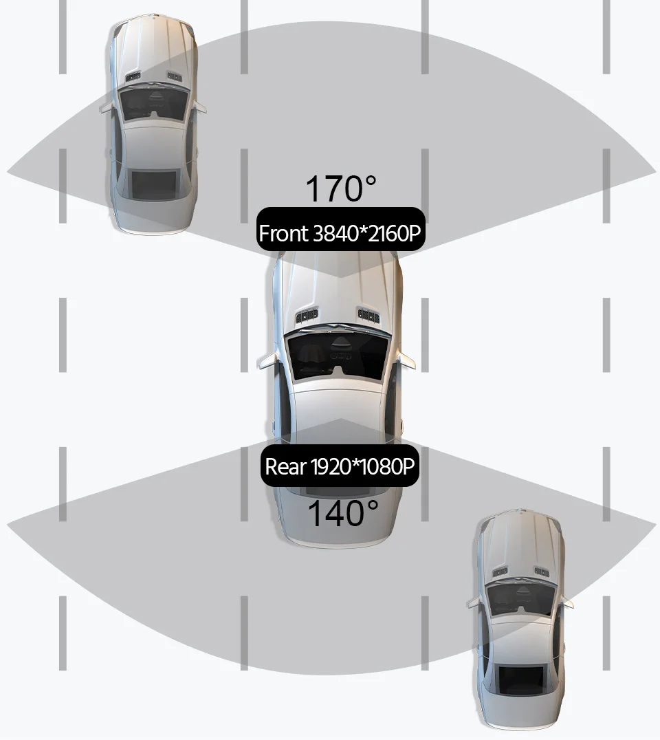 ●Video Resolution:Dual Lens; Front: 3840×2160@30FPS; Rear: 1920*1080P@25FPS