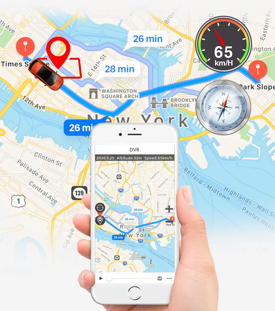 GPS function is to record the driving route location.we can see the speed and driving route on the computer by provided player