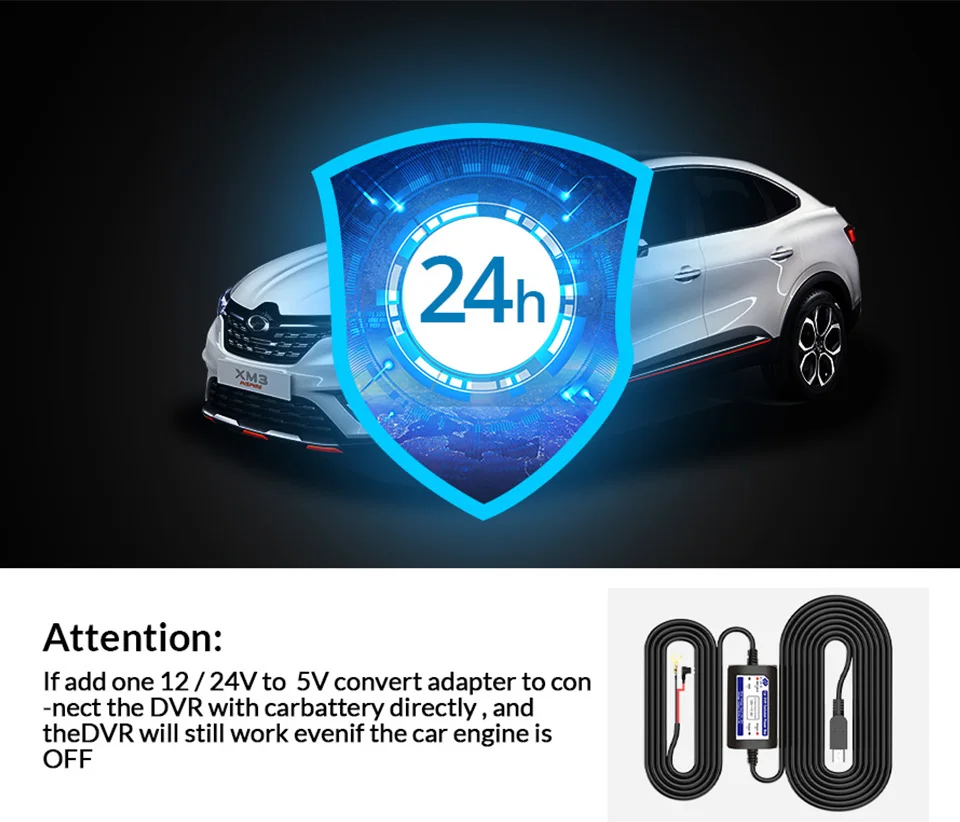 ●About 24h Monitoring: The DVR is only compatible with cars that have a 12V power supply. A 24V power supply will burn the motherboard. If you want to use 24V, please add a 24V to 12V Converter(BL).
