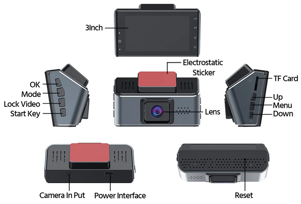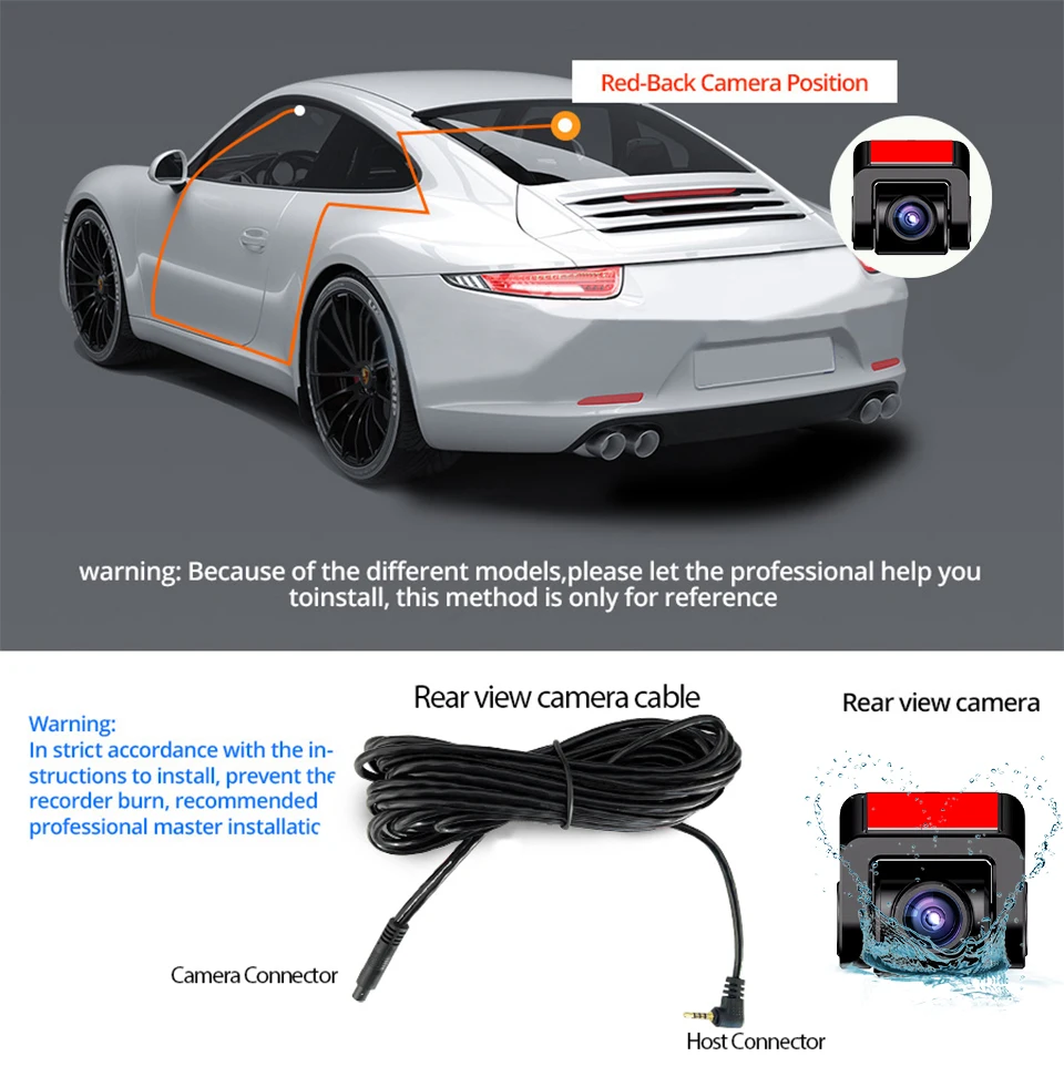 170 Degree Angle front camer with 140 Degree Angle Rear view Camera (Optional) that allows for simultaneously recording videos from two different angles. Two split view make you have clear view from front and back-up camera.