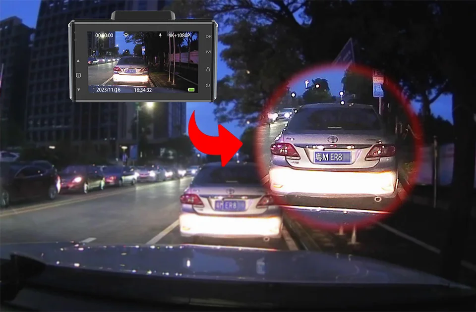 With the Revolutionary Super Night Vision Technology, the car dash cam can capture clearer videos and photos even in low-light night conditions. F/1.6 Largest Aperture Available + 6-Glass Wide Angle Lens with Proprietary Focal Length of the lens gives you more clear smaller details.