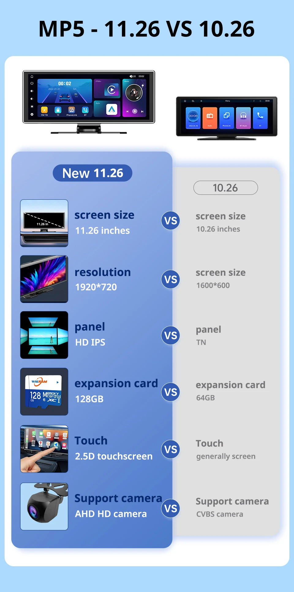 new 11.26inch IPS Touch Screen CarPlay Radio Multimedia Video Player Portable Wireless Carplay MP5 Player For Apple Or Android Auto