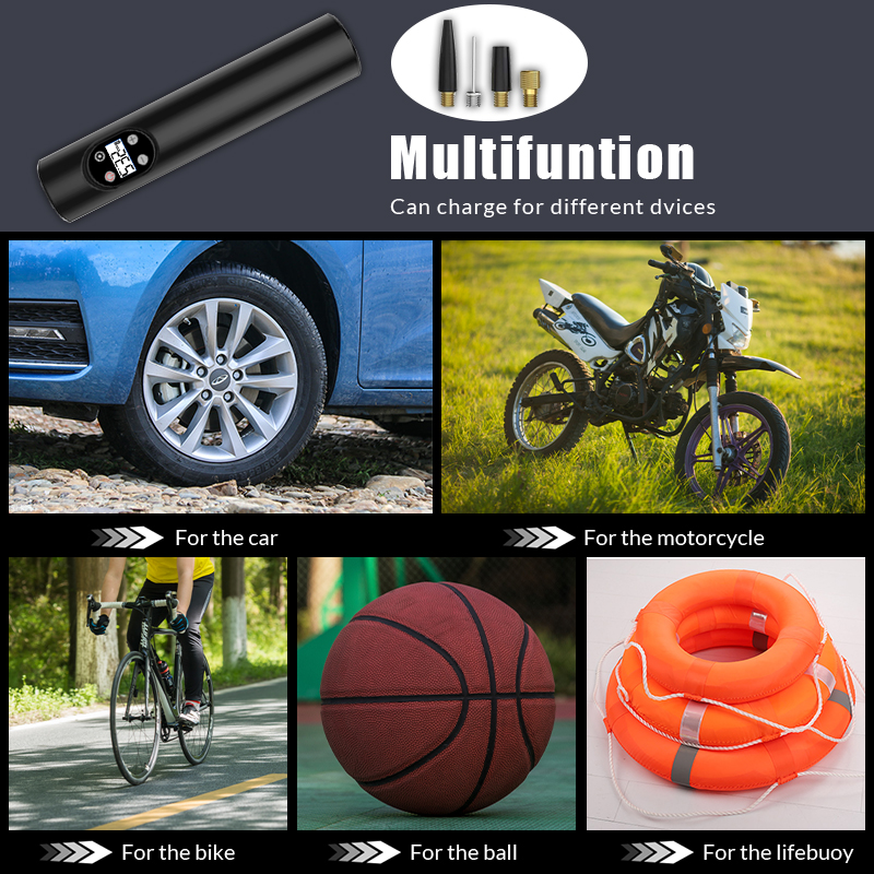 ●INFLATES ANYTHING: Includes 3 nozzle adapters and 1 air hose. Use the Schrader valve on cars, SUVs, motorcycles, and bicycles. Use the Presta valve for a bike tire pump. Needle adapter for sports equipment like basketballs. General adapter for cushions, air pillows and similar.