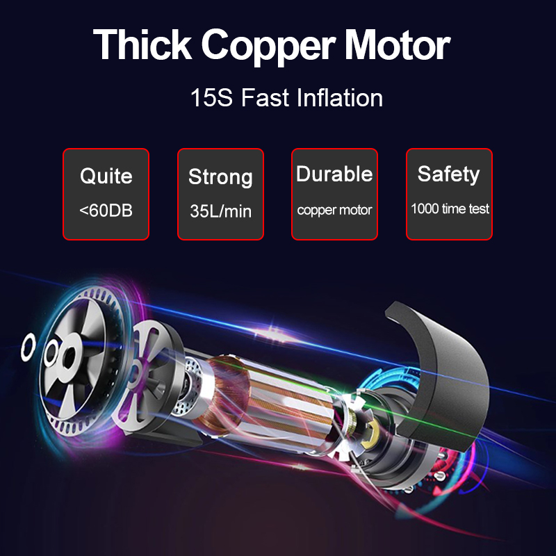 Pure copper coil motor,using suspension design,avoid shell material resonance,damping noise reduction and damping,effectively reduce 30% inflatable noise.