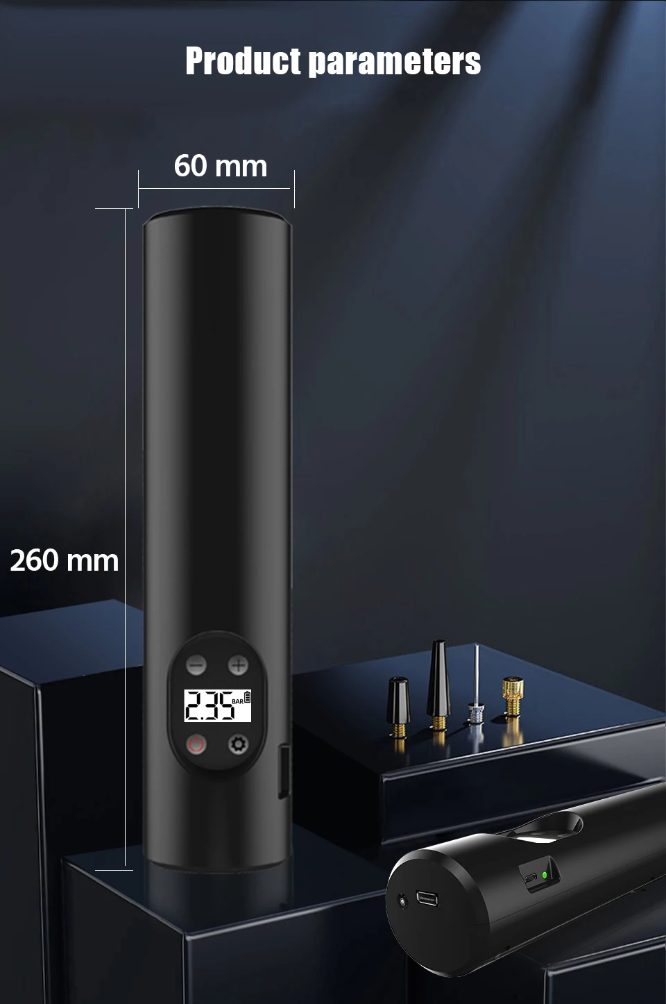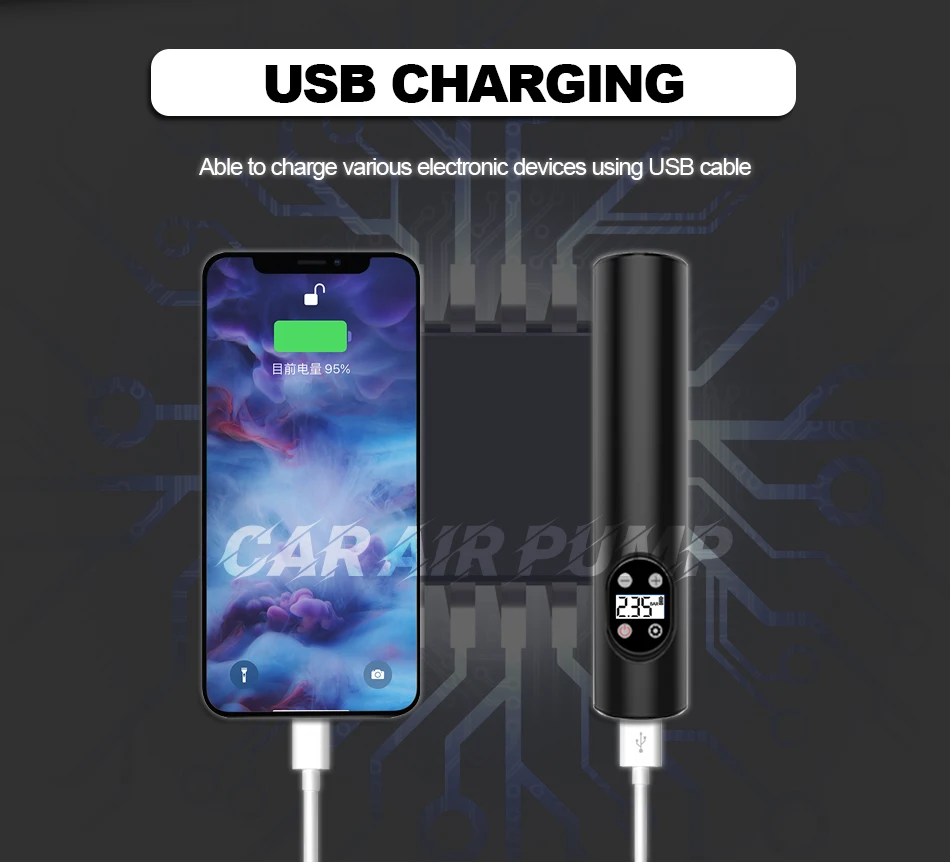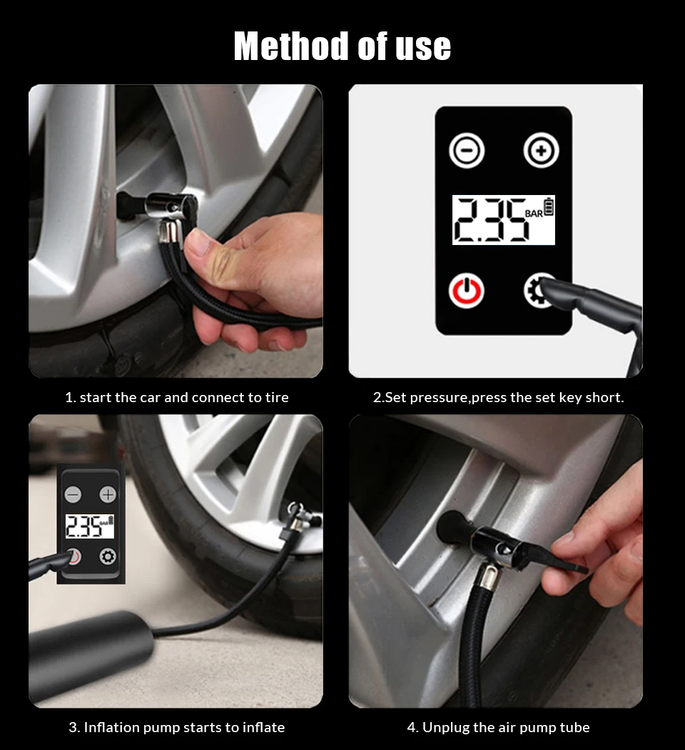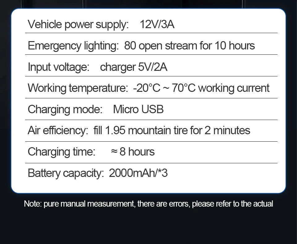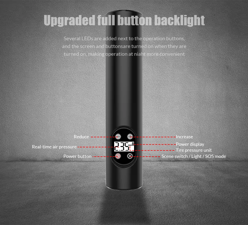 ●Use at night:Built-in LED flashlight and the back display for low light conditions; Deflate button for decreasing pressure;Powerful 2000 mAh rechargeable battery with fast recharging; Rated to 150 PSI.
