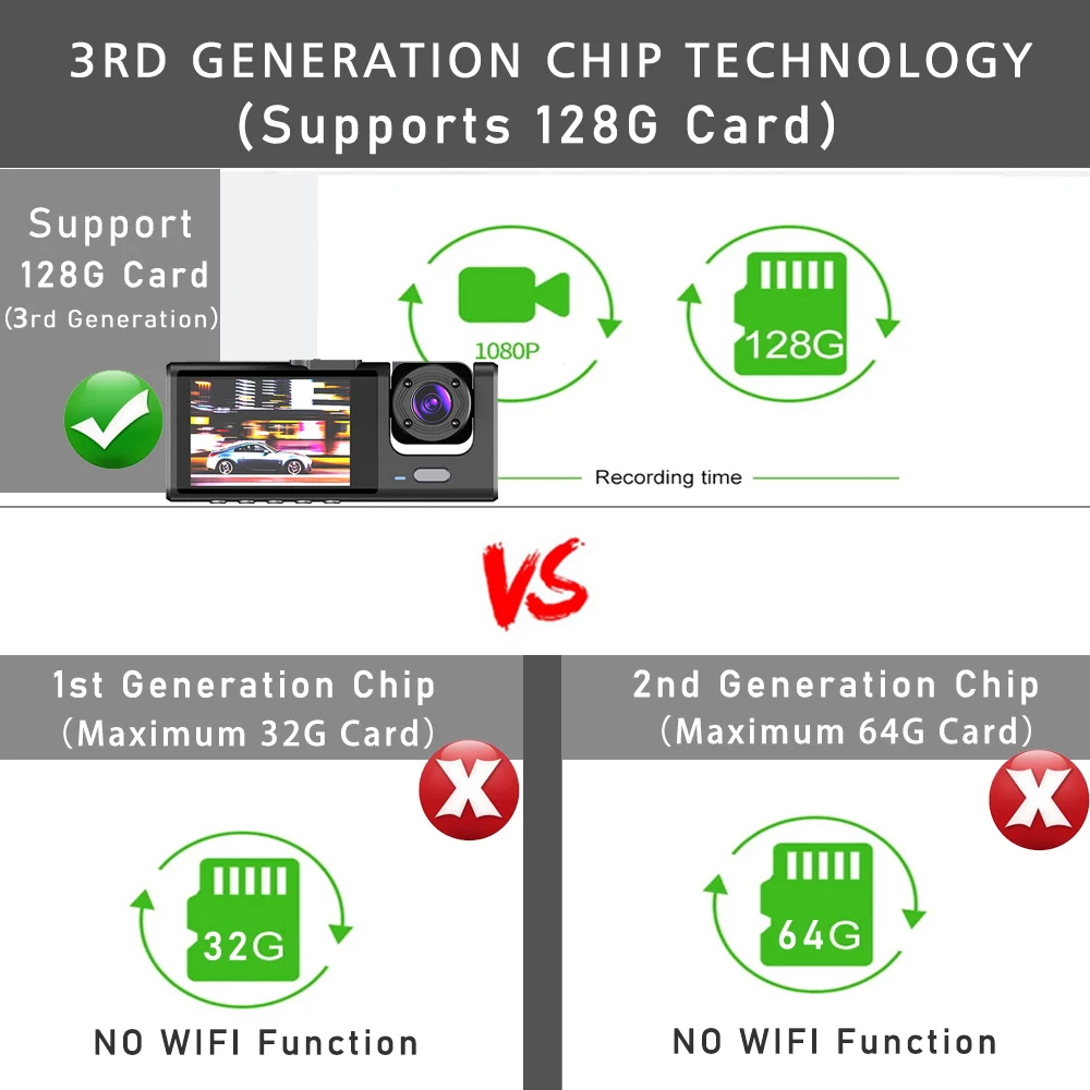 The recorder needs to be equipped with a high-speed C10 or higher memory card for normal use. It is recommended to buy memory card packaging in this store to avoid adverse reactions to the product due to the purchase of irregular memory cards!