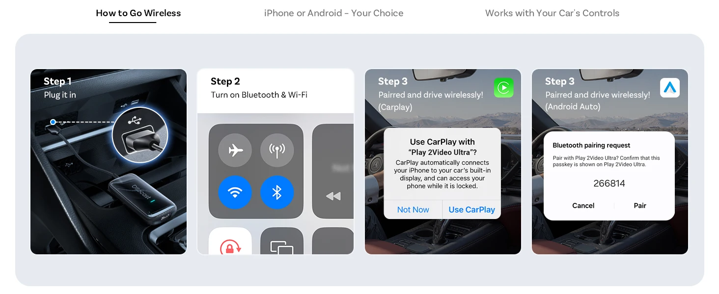It is a good device but keep in mind that it only works if you have factory carplay on your car if not, It won't work and in this way i don't really see the point why did you buy this device only if you want wireless that's all