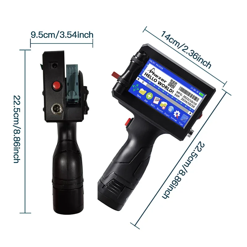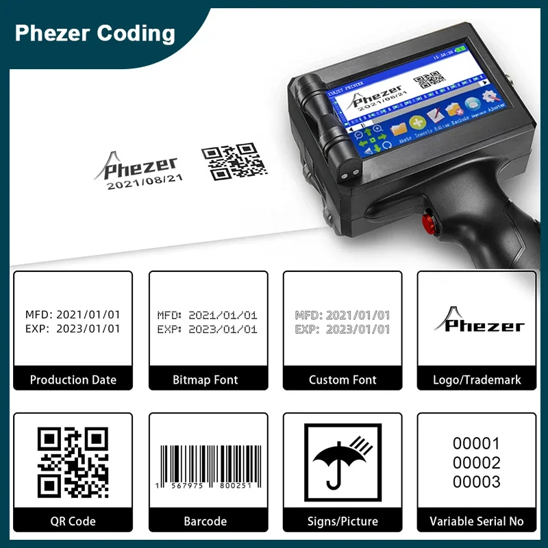 Phezer 12.7/25.4mm Label Printer Handheld Inkjet Printer QR Bar Batch Code Date Number Logo Expiry Date Coding Machine Portable