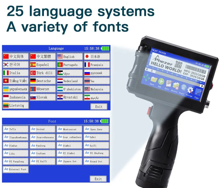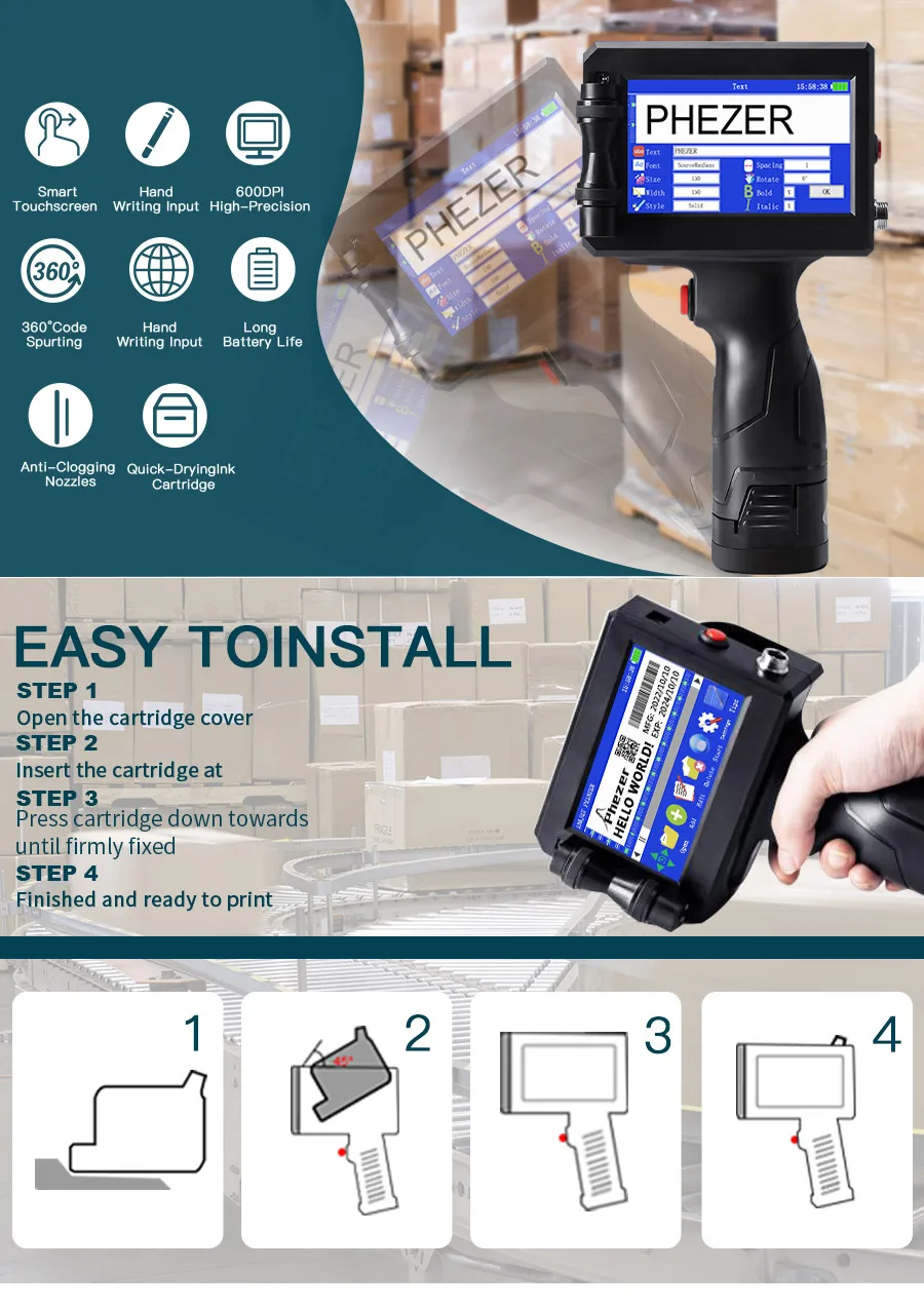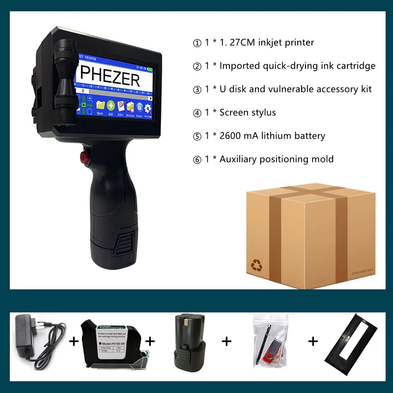 Phezer 12.7/25.4mm Label Printer Handheld Inkjet Printer QR Bar Batch Code Date Number Logo Expiry Date Coding Machine Portable