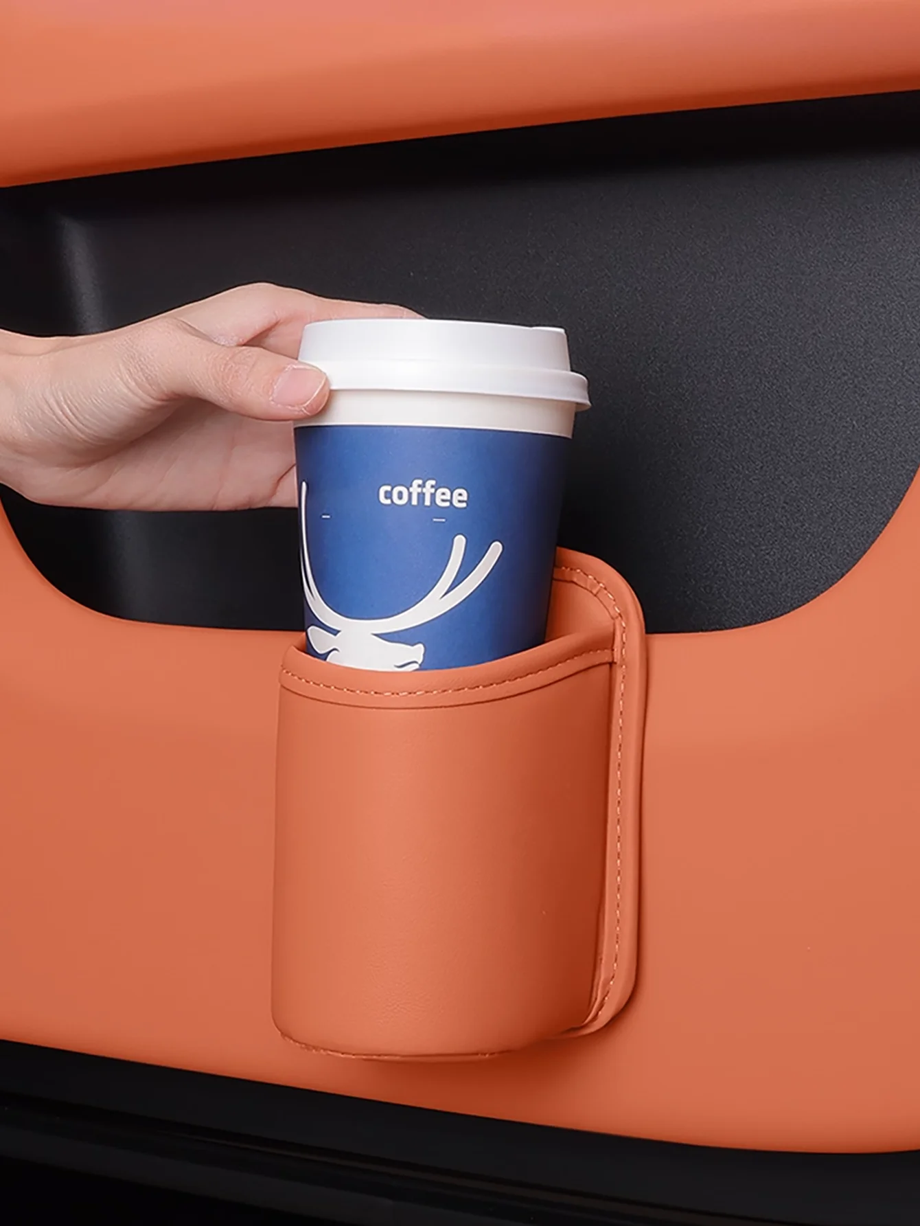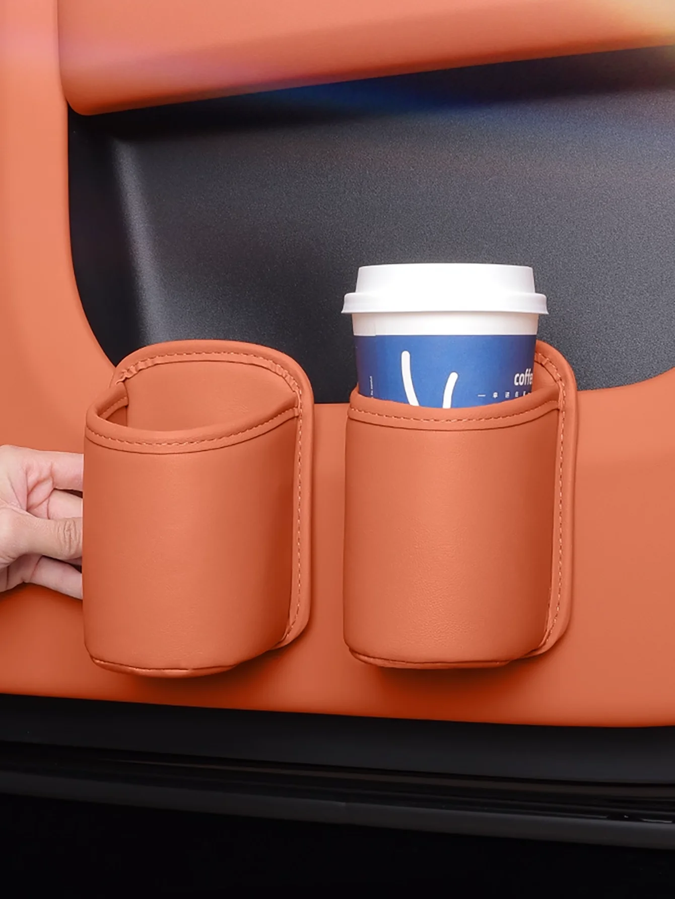 Crafted from premium PU leather, this car cup holder offers durability and a high-end look.