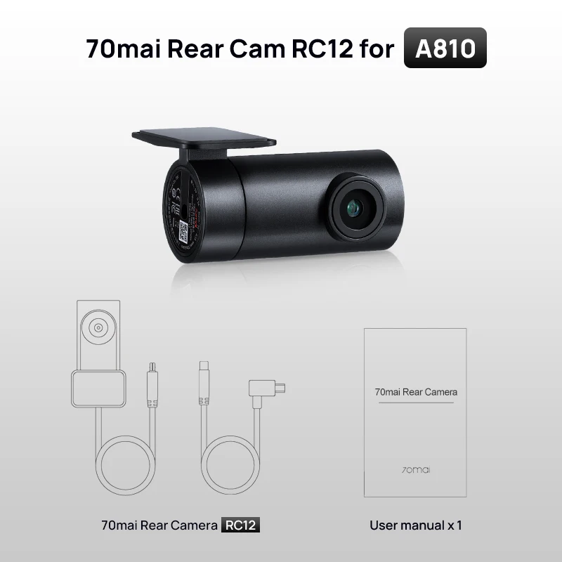 Rear Cam RC12 for 70mai Dash Cam 4K A810 Car DVR Rearview Cam Support Parking Recording
