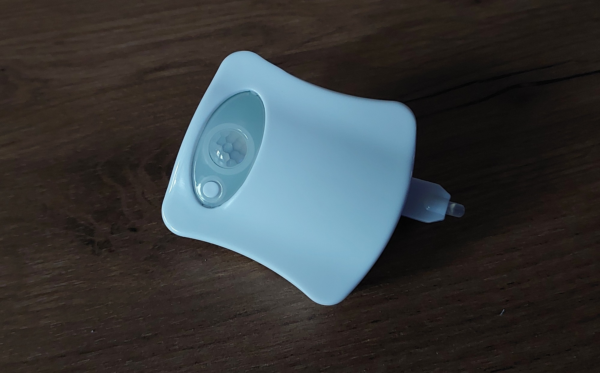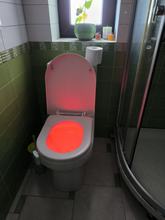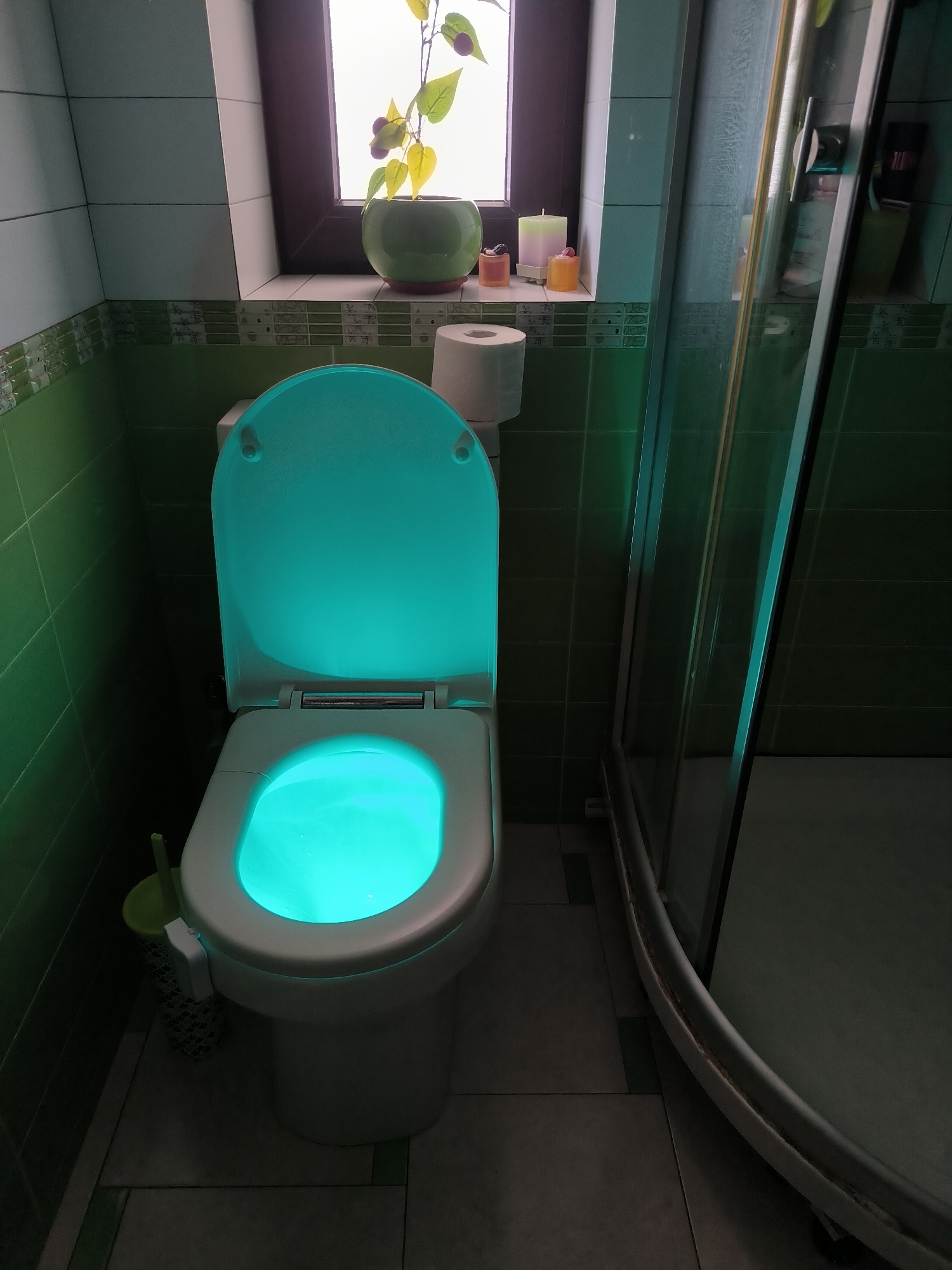 يعمل بشكل طبيعي ، على الرغم من تثبيت مستشعر الإضاءة بشكل غير صحيح. يبدو أفقيا ، وليس عموديا. نتيجة لذلك ، تقوم بتشغيل الضوء ولا يخرج المرحاض.