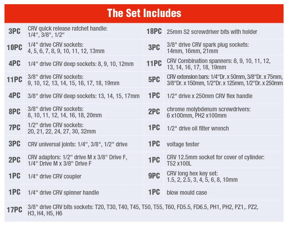 Quality set, good case, durable metal. The set includes popular pit types and heads, a good ratchet, and an adapter. No adapter for power tools (under 6-grannik) otherwise everything is OK