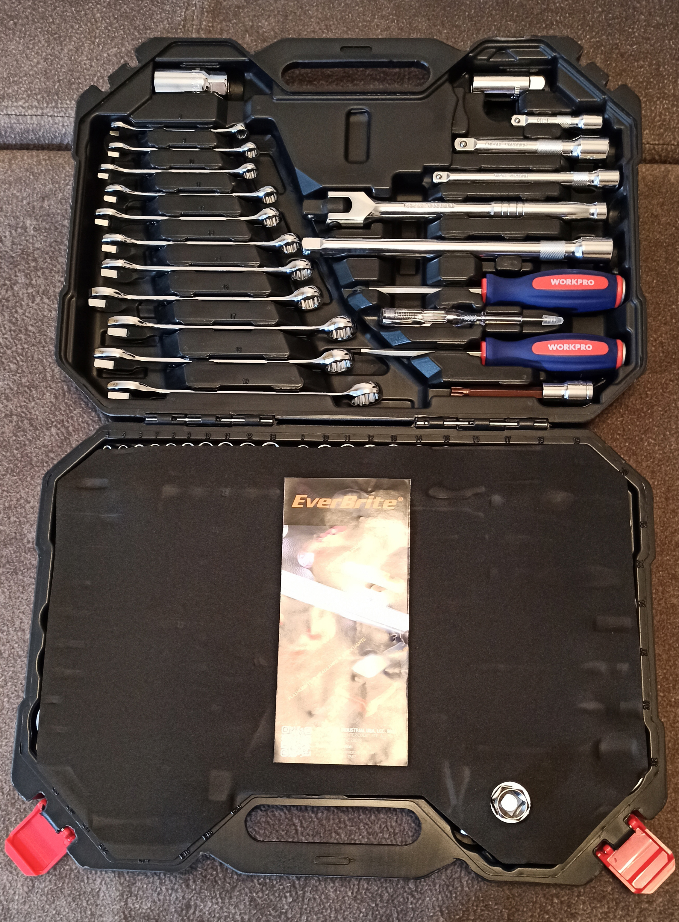 The tools and box feel like excellent quality, everything came in great condition except for a few very minor scrapes (which I don't mind in this case, as we are talking about tools). was surprised to have the package delivered to my door by courier, no additional fees or taxes. very pleased.