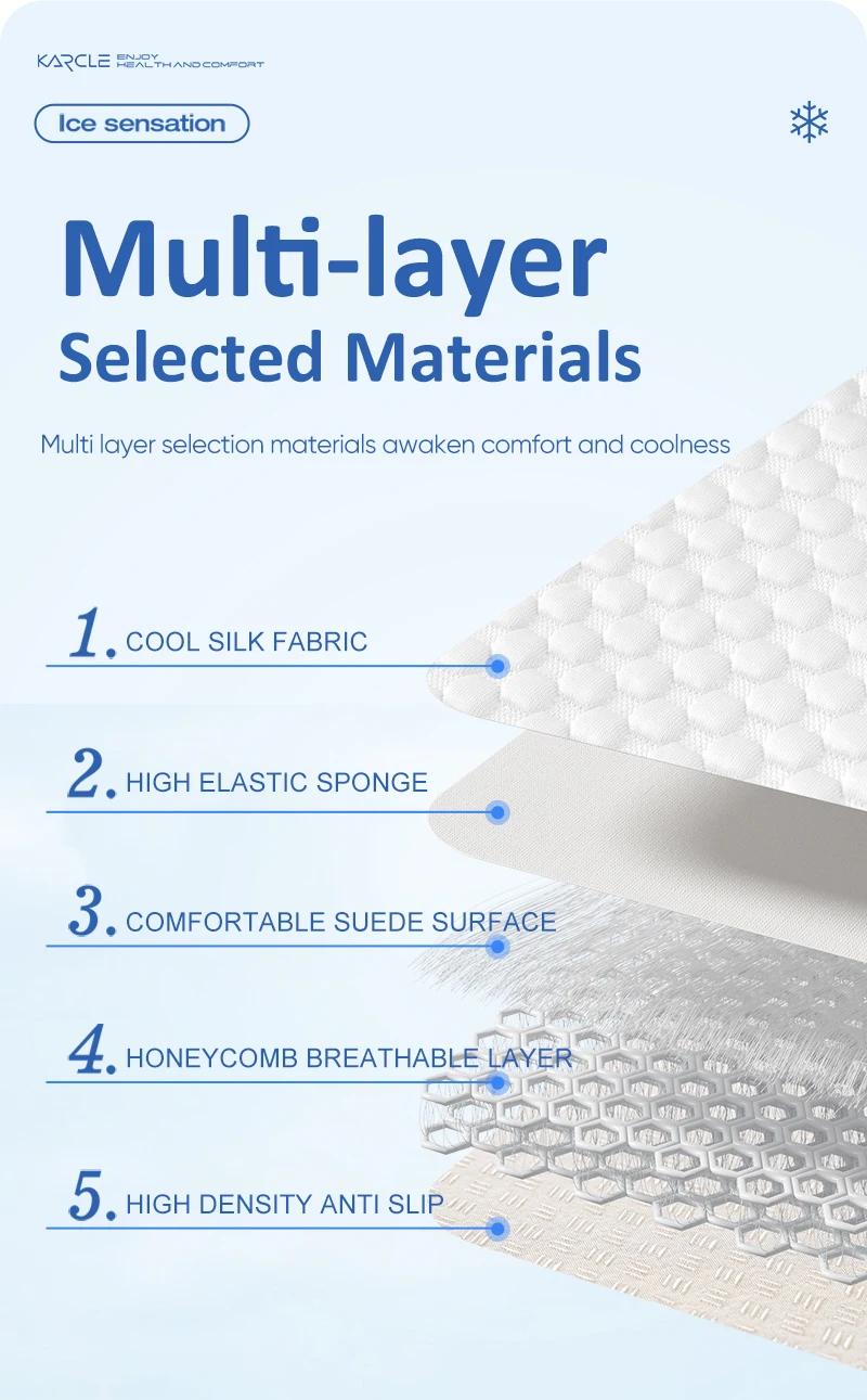 1. Made of ice silk fabric and anti slip fabric, it is breathable and breathable.