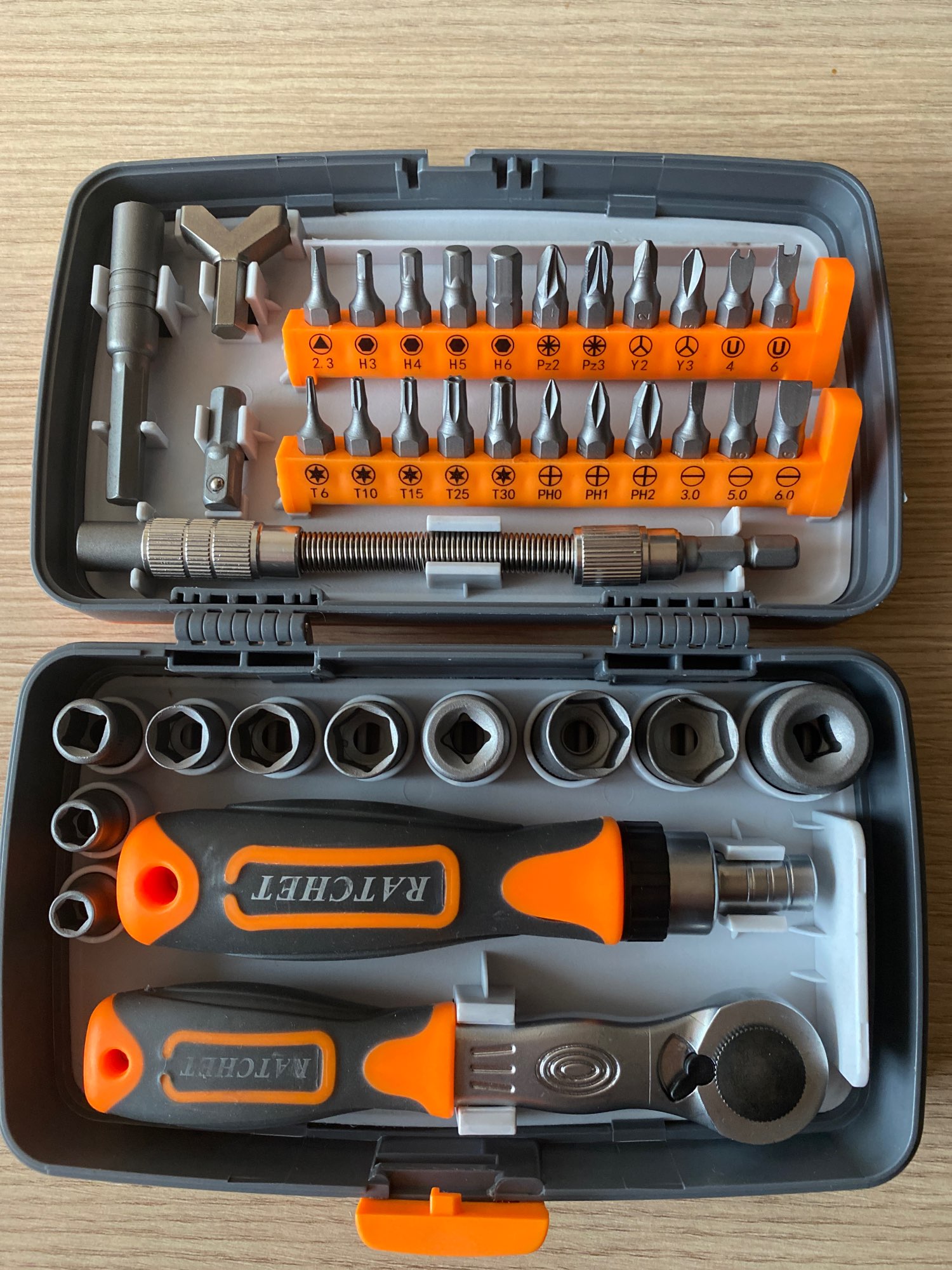 The multifunktionstool set matches the description. The materials of bits and other tools makes a very good impression. Price/Performance matches for me and the store has delivered very quickly!