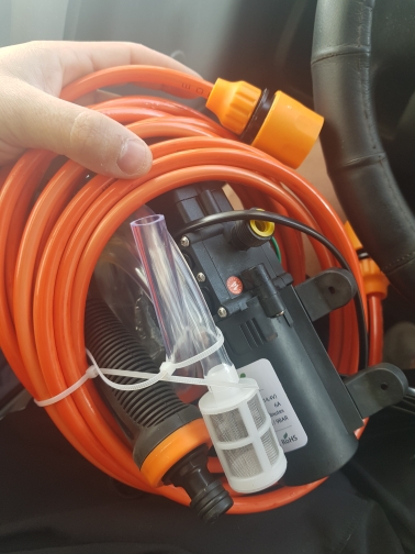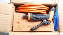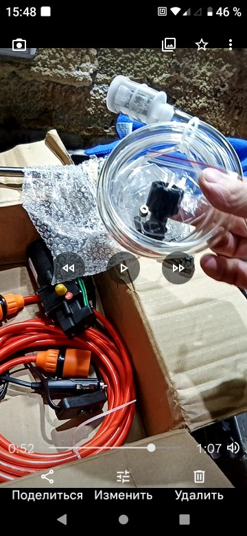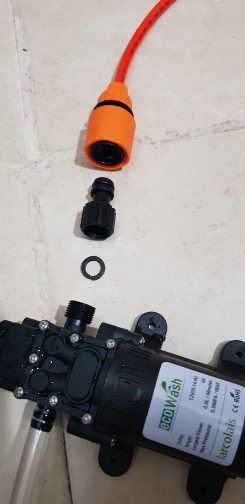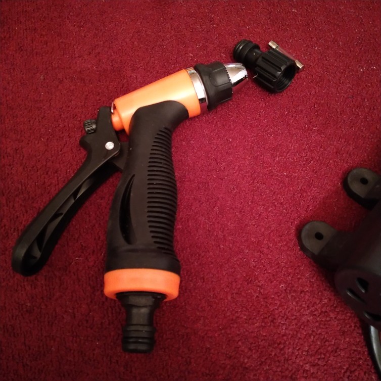 Excellent apparatus, good pressure, good pressure. Very convenient piece for washing the car and for spraying. The inlet hose for me is short, I bought another 5 meters, I thought I could not pump, but I was wrong. To get the water into the hose faster, it's better to open the gun. The adjustment of the jet in the gun is large, many positions, to choose from, just twist and choose, from a thin jet to spray.