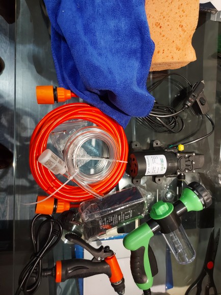 Mortel I took the pack with the foam gun, adapter 220v to 12v cigarette lighter, sponge and cloth, I just tested it's top of the top I recommend